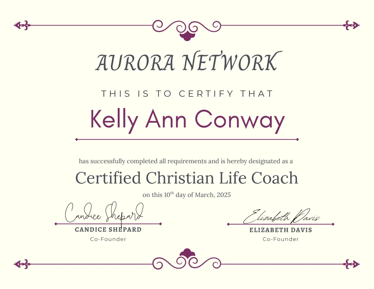 Kelly is an Aurora Certified Life Coach, salon owner, and daughter of the King. She has completed the program "Be in Health", Spiritual Roots of Disease, the Alpha Series course, and hosted a Christ-Centered Recovery radio show.